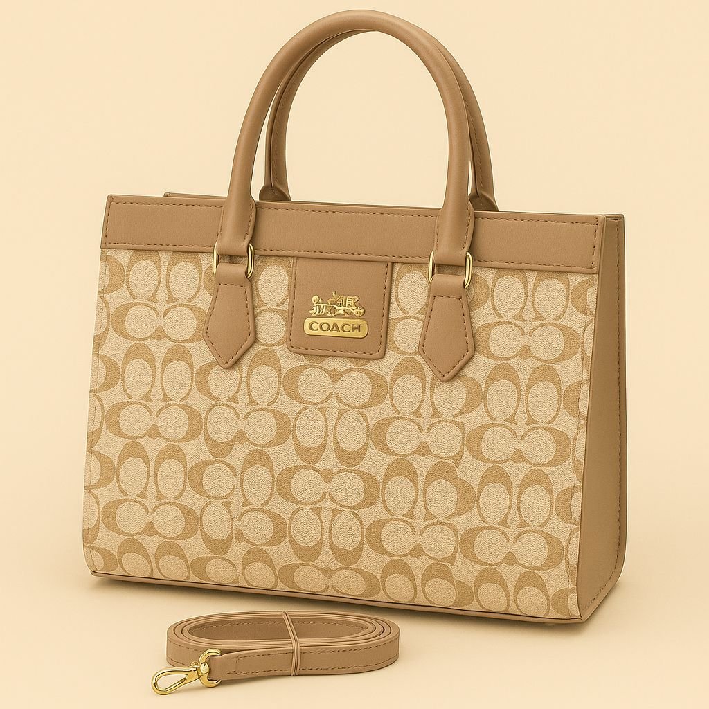 Luxury Designer Tote Handbag with Signature Pattern & Detachable Strap (Beige & Brown) Original price was: ₨ 5,000.Current price is: ₨ 2,499.