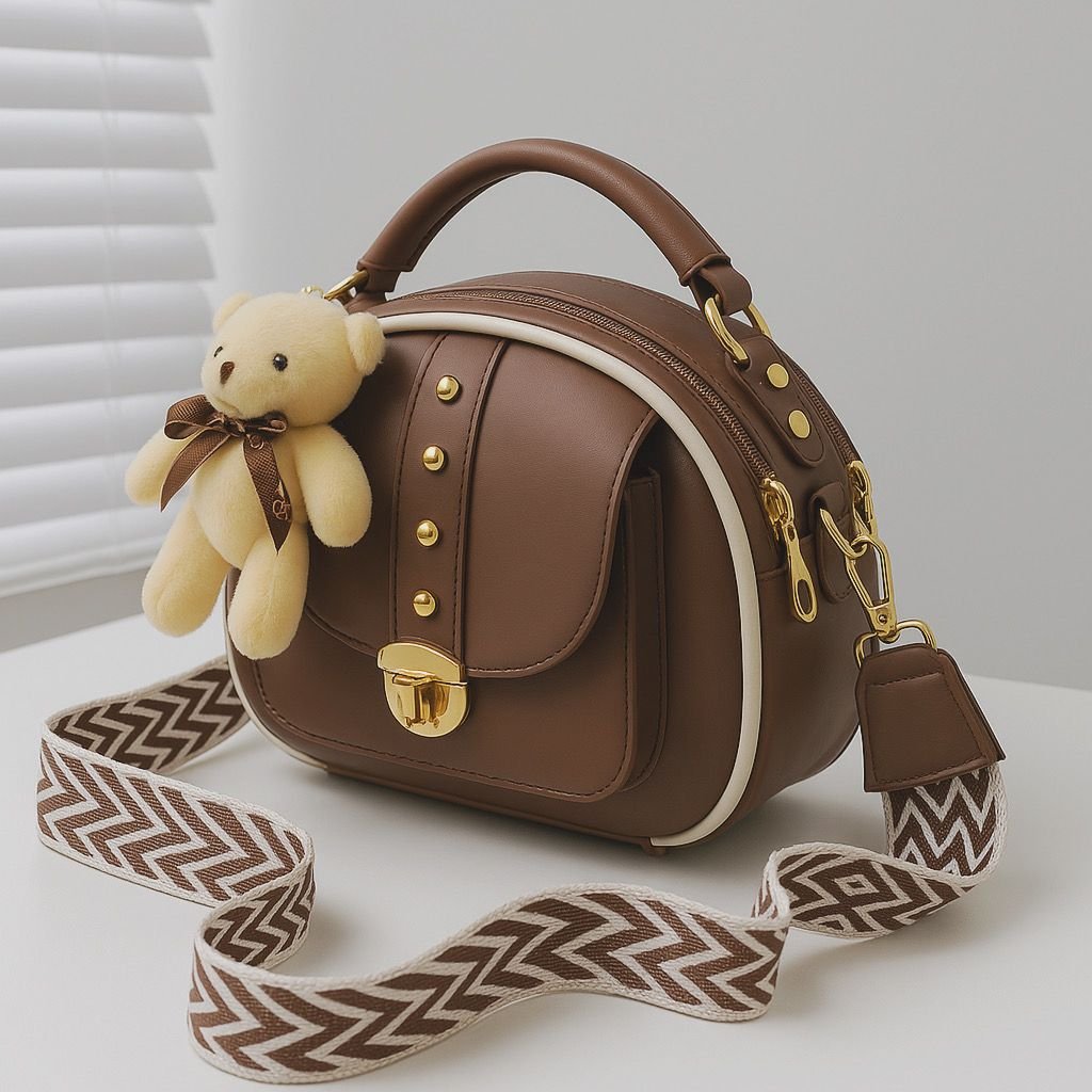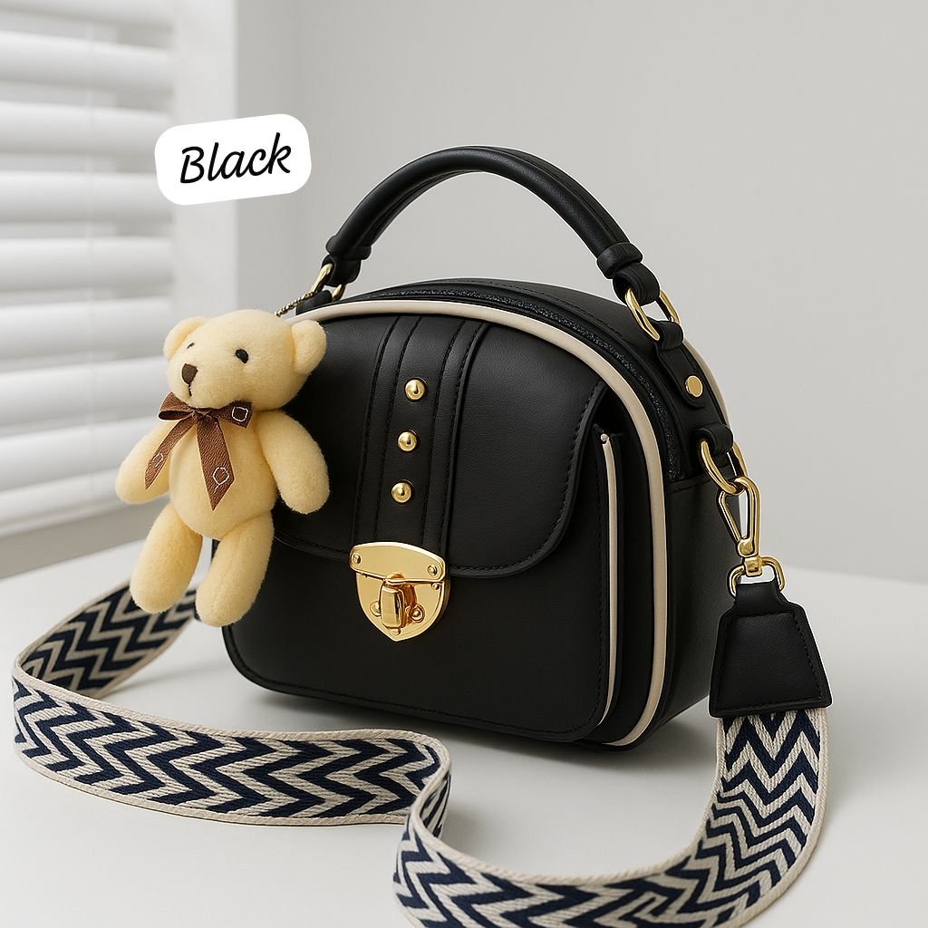 Step up your style with the Premium Crossbody Bag with Gold Accents & Teddy Keychain, designed for women who love chic and playful fashion. This elegant crossbody bag features luxurious gold detailing that adds a sophisticated touch, while the adorable teddy keychain brings a fun, youthful vibe. Crafted from high-quality materials, it offers durability and a smooth finish. The adjustable strap ensures comfort and versatility, making it ideal for shopping, travel, or casual outings. Spacious yet lightweight, this crossbody bag perfectly balances elegance and practicality — a must-have accessory to elevate your everyday fashion effortlessly.
