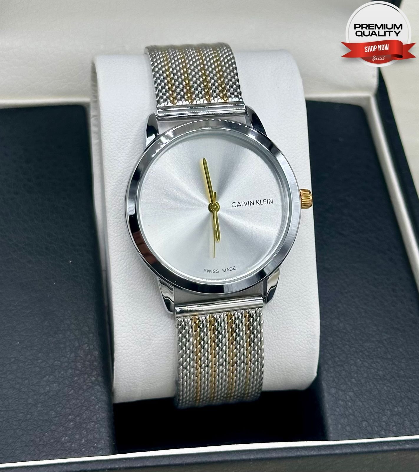 • Versatile Two-Tone Finish: A premium blend of metallic tones on the mesh bracelet ensures easy pairing with both gold and silver accessories.